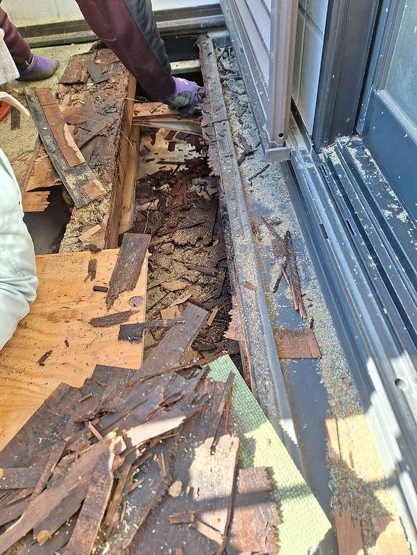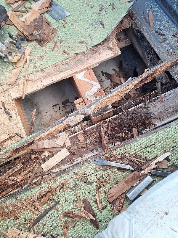 ○シート防水から雨漏り→FRP防水へ 下地床組全取替え