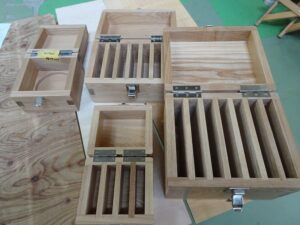 お仕事で使われるサンプル品を入れる収納箱です。タモ無垢材で製作しました![]()